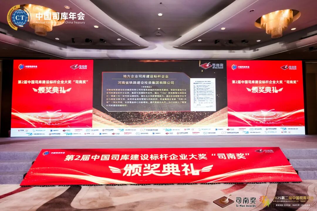 “司南獎”作為國內企業司庫建設領域的權威獎項,旨在表彰在司庫體系構建、資金管理創新和價值創造等方面表現突出的標桿企業,已成為行業極具影響力的榮譽象征。在本屆評選中,河南鐵建投集團從170余家參評單位中脫穎而出,其系統性的司庫布局和突破性實踐贏得了評審委員會的高度認可。